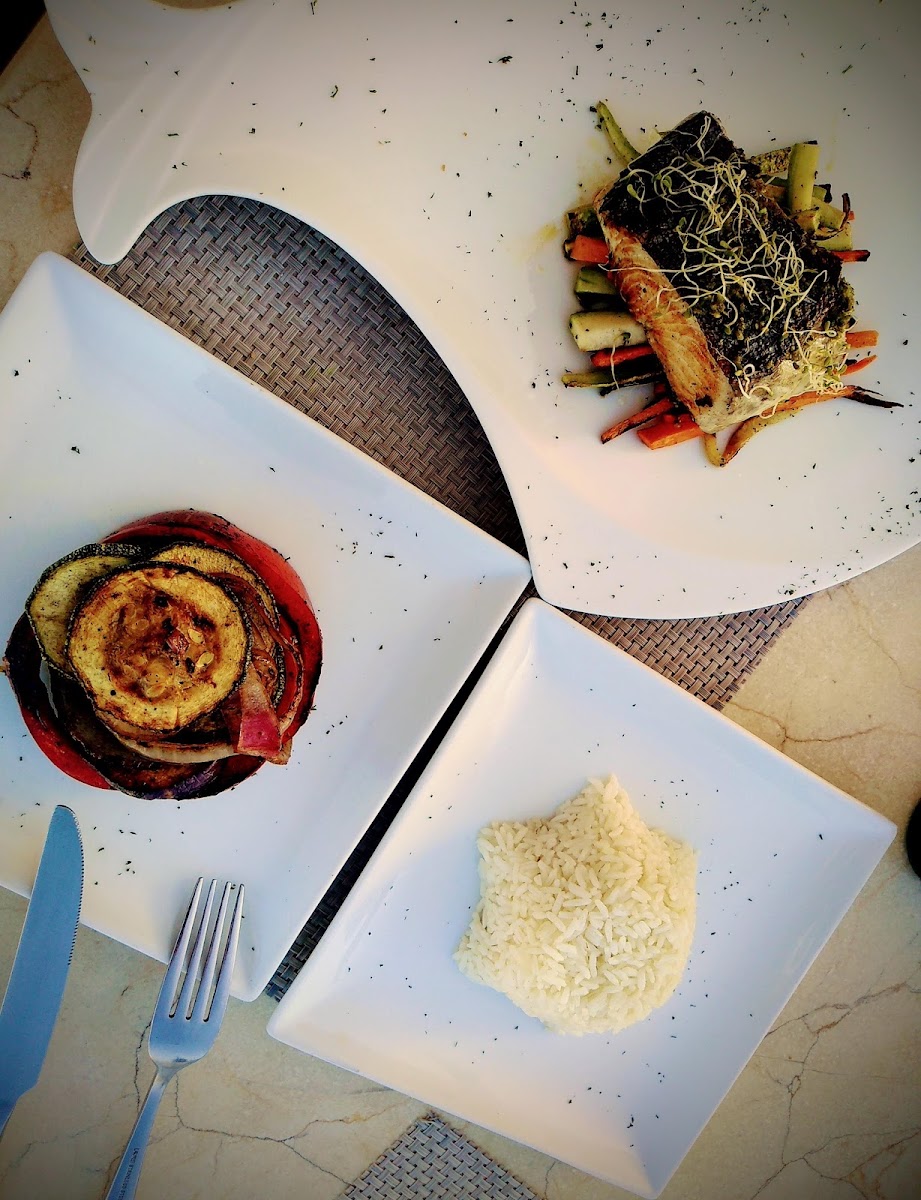 I had a wonderful meal! Salmon and Cesar salad. Perfectly cooked salmon and fresh salad with shrimp. Great views. Service was perfect. One of the best meals I have had in this area. On par with restaurants in New York City where I live. Recommended highly!
